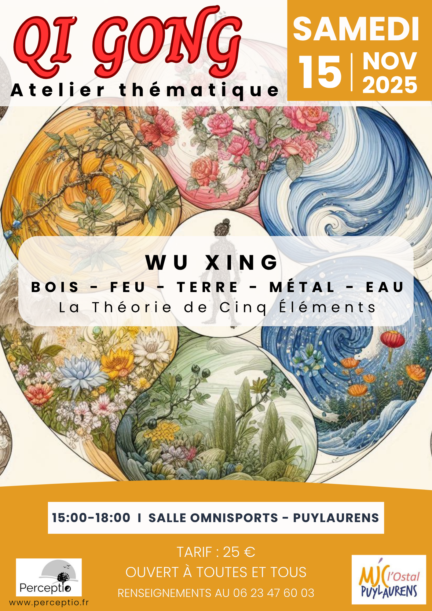 - 15 novembre 2025 : 5 MOUVEMENTS > pour comprendre la classification des phénomènes naturels selon la pensée taoïste et les liens de corrélation que l’on peut établir entre eux (Ex: Poumon/Automne/Tristesse ou Foie/Printemps/Colère, etc...)